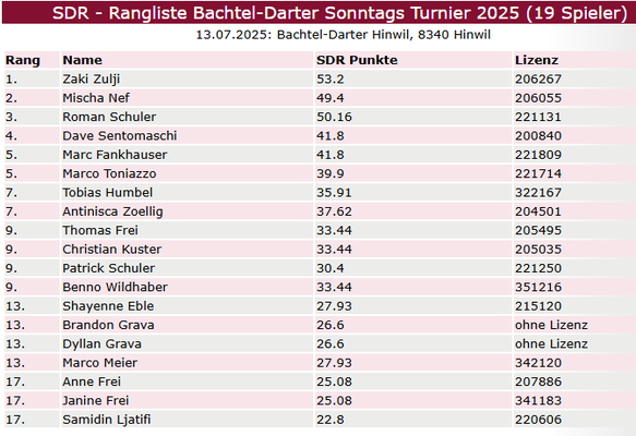Sonntags Turniere @The Pirates Hinwil 24.01.2025