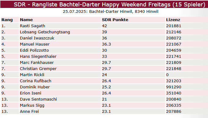 Happy Weekend- Freitags Turnier 09. Mai 2025